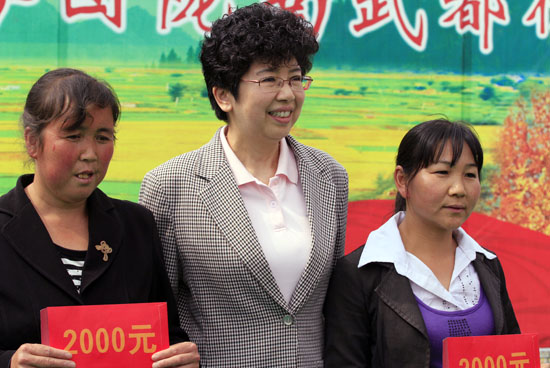 赵实书记代表中国文联向贫困大学生家庭、文艺支教学校贫困生赠送助学金。中国文艺网 白伟 摄