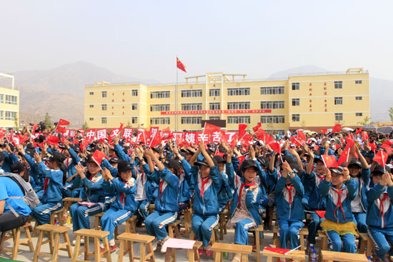 学生在演出现场举起“中国文联的叔叔阿姨辛苦了”的牌子。中国文艺网 白伟 摄