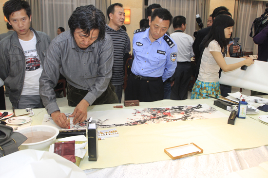 中国美协艺委会办公室主任丁杰现场作画 中国文艺网 白伟 摄