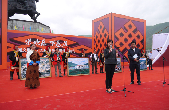 王瑶代表中国摄协为玉树赠送摄影作品