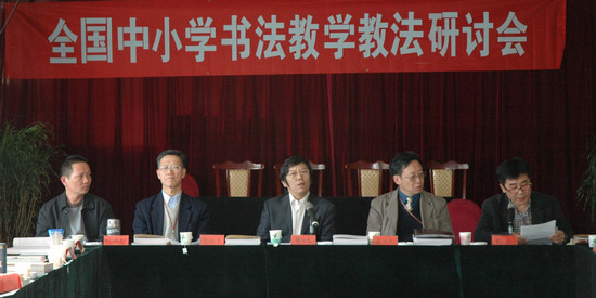 2008年10月26日—27日,由“书法普及:优化德育的有效载体和方式”课题组主办的全国中小学书法教学教法研讨会在北京昌平隆重召开。中国美术家协会分党组成员、副秘书长、课题组组长张旭光,首都师范大学教授、博导、副组长叶培贵,中央教育科学研究所学术委员会主任程方平,中央教育科学研究所研究院齐欣,中央教育科学研究所副研究员、课题组副组长刘洪,北京书协理事沈莉,华东师范大学教授周斌,海燕出版社社长郑荣,首都师范大学博士姜栋等课题组专家出席了会议,课题组邀请在研讨会征文中获奖代表参加了会议。