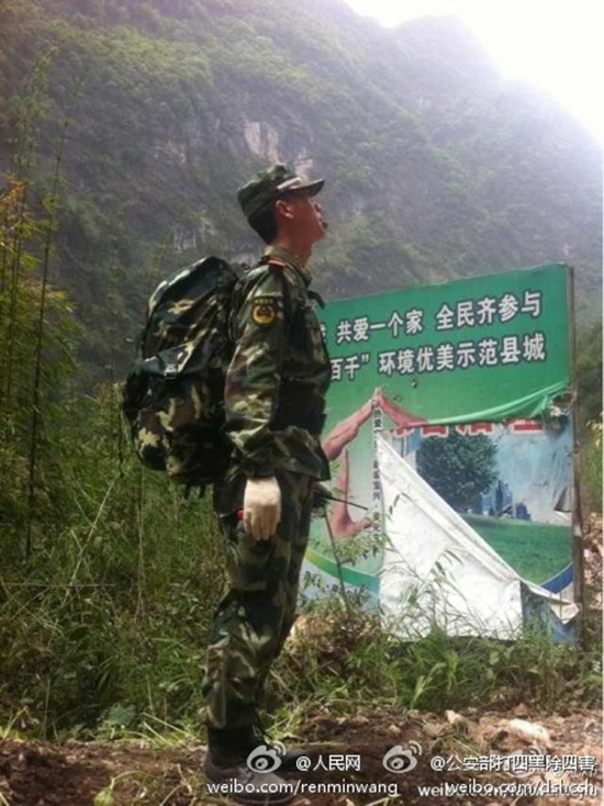 据网友@范炜发布:“我们要向这位战士致敬,他的工作是在同伴们抢修道路时,观察山上岩石动向。一旦有塌方碎石滚落,他就会吹响哨子,因此这个工作非常重要,丝毫不得马虎,他也在这里一动不动。向您致敬!”
