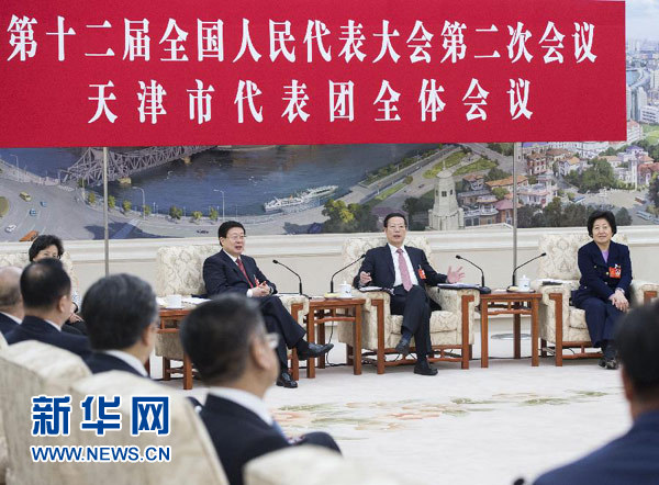 3月6日,中共中央政治局常委、国务院副总理张高丽参加十二届全国人大二次会议天津代表团的审议。 新华社记者 王晔 摄