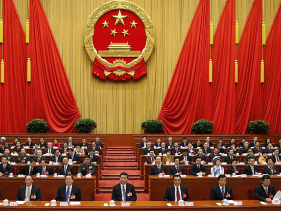3月13日,第十二届全国人民代表大会第二次会议在北京闭幕。习近平、李克强、俞正声、刘云山、王岐山、张高丽等党和国家领导人在主席台就座。新华社记者鞠鹏摄