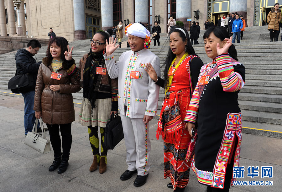 3月12日,全国政协十二届二次会议在北京人民大会堂举行闭幕会。图为会议结束后全国政协委员们在大会堂前合影。新华网 翟子赫 摄