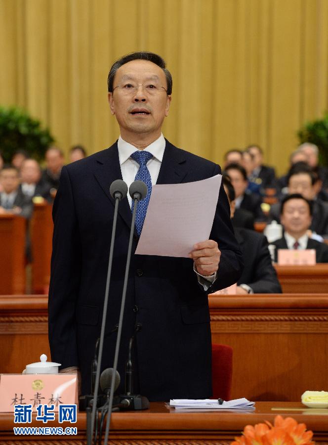 3月3日,中国人民政治协商会议第十二届全国委员会第二次会议在北京人民大会堂开幕。杜青林主持开幕会。 新华社记者马占成摄