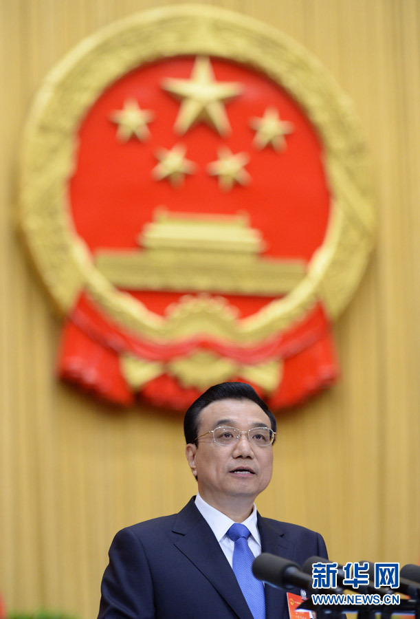 3月5日,第十二届全国人民代表大会第二次会议在北京人民大会堂开幕。国务院总理李克强作政府工作报告。 新华社记者李学仁摄