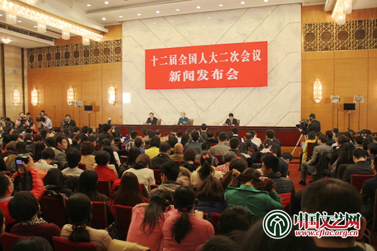 3月4日,十二届全国人大二次会议新闻发布会在京举行。图为新闻发布会现场。 中国文艺网 金涛 摄