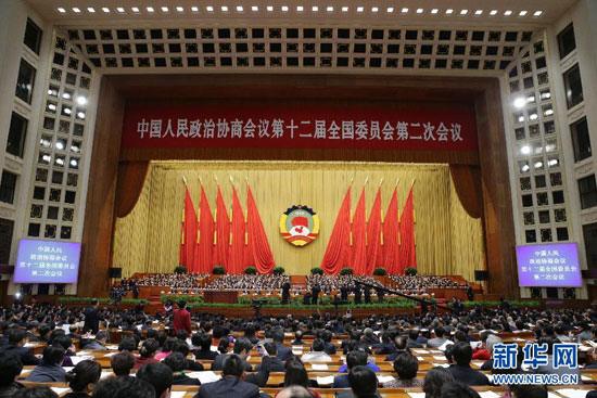 3月7日,全国政协十二届二次会议在北京人民大会堂举行第二次全体会议。新华社记者邢广利摄