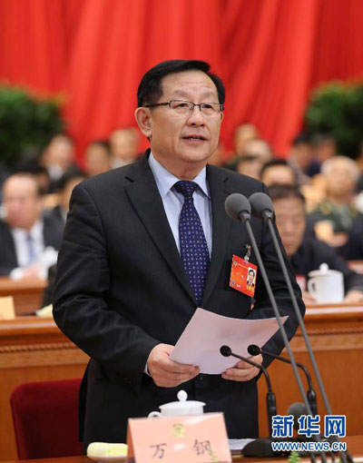 3月7日,全国政协十二届二次会议在北京人民大会堂举行第二次全体会议。万钢主持会议。 新华社记者兰红光摄
