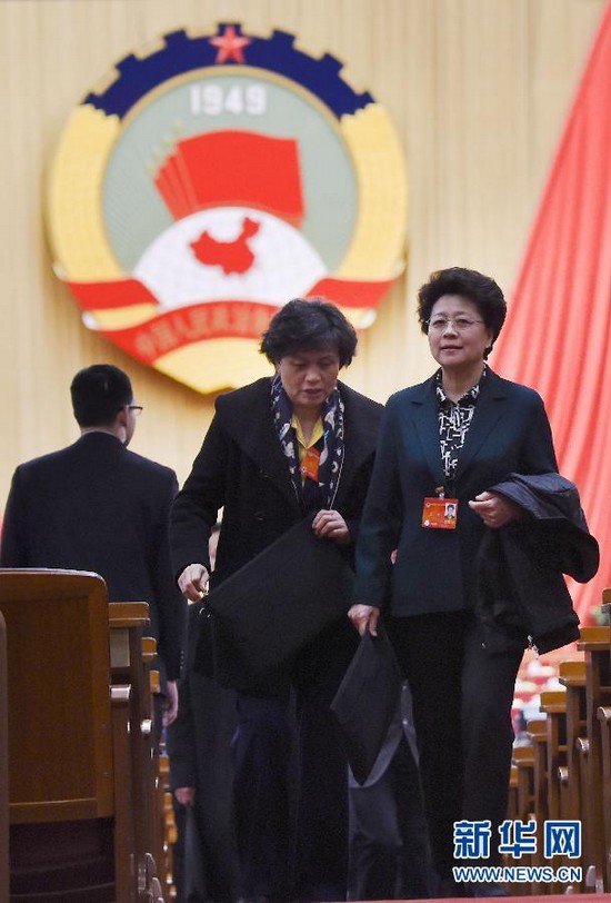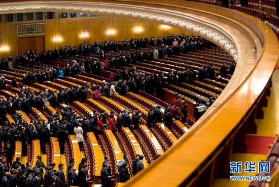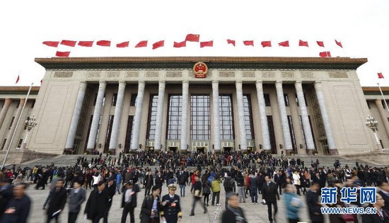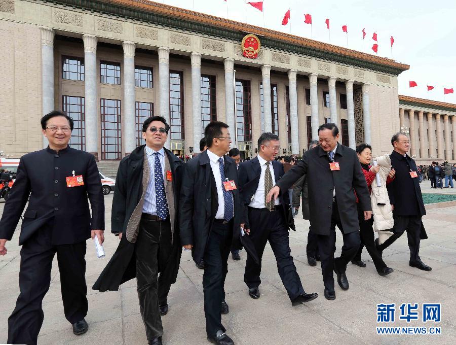 3月12日,全国政协十二届二次会议在北京人民大会堂举行闭幕会。这是委员走出会场。 新华社记者王建华摄