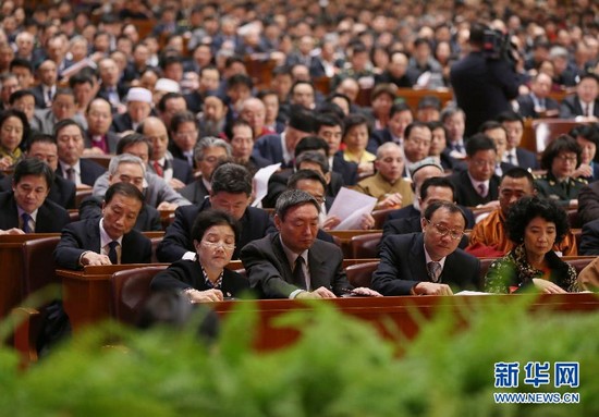 3月12日,全国政协十二届二次会议在北京人民大会堂举行闭幕会。这是委员在听会。 新华社记者陈建力摄