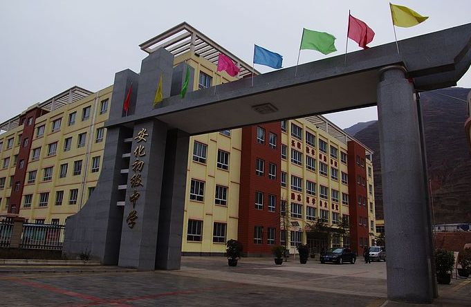 安化初级中学坐落于武都城区以北23公里处的安化镇槐树下村,新校舍是“特殊党费”支持的5.12地震灾后恢复重建项目。根据当地人口发展及生源状况,学校按2200名学生的规模建设,项目投资3616万元,新建校舍建筑总面积19748.57平方米,其中师生食堂669.76平方米、建成操场4100平方米、篮球场2个、羽毛球场2个。学校现有理化生实验室7个,配备了微机、多媒体投影等现代化教学设备多媒体教室30个,建成了多媒体双向教学系统录播教室1个、电子备课室1个、舞蹈室1个、棋牌室1个、乒乓球室1个、美术教室1个、音乐教室1个,建设了宽带数字化校园网络,教学办公实现了自动化、信息化。该校现有正式教师84人,其中本科学历45人、专科学历39人。现有学生1666人,教学班31个。学校每周每班设置音乐课2节、美术课2节,目前有专职的音、美教师各1名。