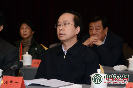 中国文联党组成员、副主席左中一宣读《中国文联九届六次主席团会议关于接纳中国金融文联为中国文联团体会员的决议》 中国文艺网 单鸣 摄