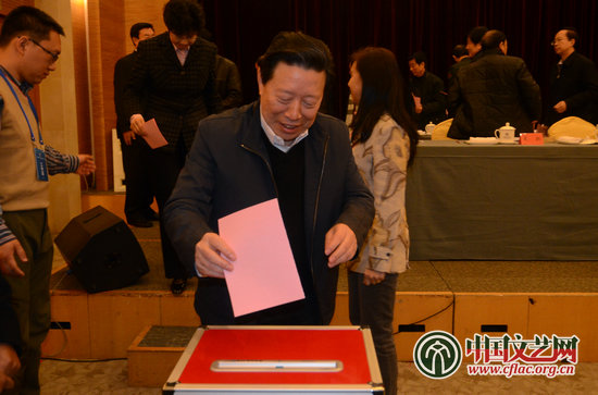 中国文联主席孙家正投票。中国文艺网 单鸣 摄