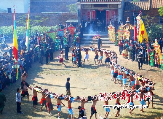 中秋节舞人龙是湛江开发区东海岛、雷州市沈塘镇一带的传统习俗,已有500多年的历史。康有为大弟子崔斯哲所著的民国刊本《海康县续志》地理风俗卷中,对当时八月十五中秋节时舞人龙的盛况进行了详细描写。