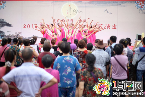 中秋街市上,精彩的文艺演出吸引到众多市民前来围观。 首席记者 罗嘉 摄