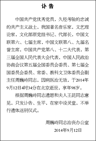 9月24日,文化部、中国文联、北京市人民政府在京联合举行纪念曹禺诞辰100周年座谈会,中国文联名誉主席周巍峙在座谈会上发言。