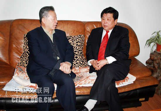 1月20日,中国文联党组书记、副主席胡振民看望中国文联荣誉委员傅庚辰。中国文联网 邱振刚 摄
