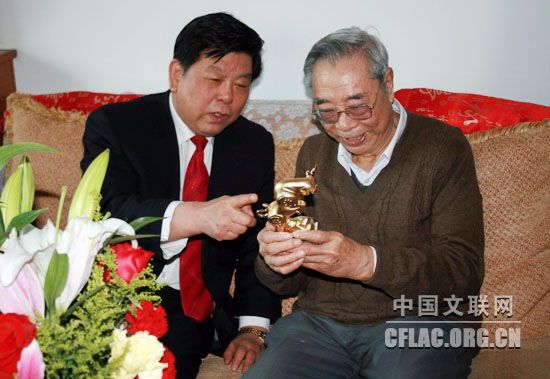 1月20日,中国文联党组书记、副主席胡振民看望中国文联名誉主席周巍峙,并赠送了节日礼品。中国文联网 邱振刚 摄