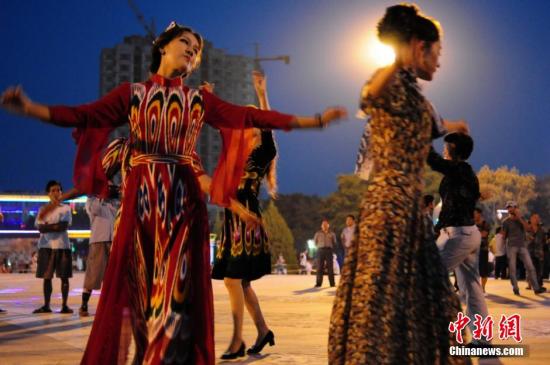 夏日凉爽的夜晚,广场舞成为新疆多地民众最喜爱的活动动之一。但新疆的广场舞没有中国东部地区繁华都市里的那种整齐划一,而是以民族舞蹈特有的热情奔放,点燃了人们的激情。