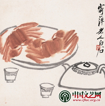 酒壶螃蟹 齐白石 1947 34.3x34cm 纸本水墨设色
