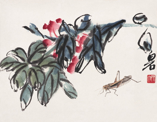 花卉蚂蚱 齐白石 1945年 23.2x29.6cm 纸本水墨设色