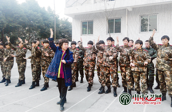 评书表演艺术家刘兰芳为四川女子特警队官兵教授评书