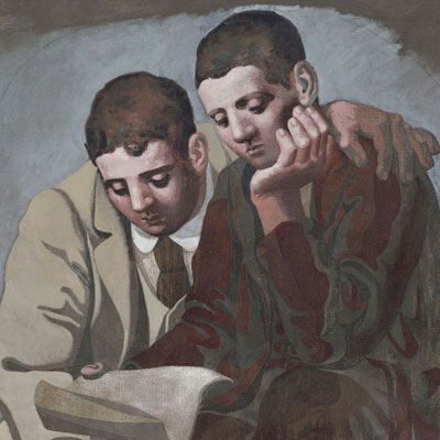 很多人认为画中描绘的就是巴勃罗•毕加索和法国作家纪尧姆•阿波利奈尔。两位艺术家于1904年在巴黎相遇,并建立了深厚的友谊。阿波利奈尔于1918年去世,此作于1921年完成,被认为是毕加索向好友的致敬之作。