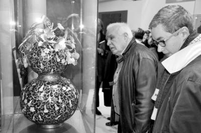 观众在欣赏景泰蓝展品 梁晓华 摄
