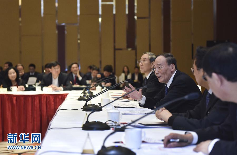3月4日,中共中央政治局常委、中央纪委书记王岐山看望出席全国政协十二届三次会议的民建、无党派委员并参加讨论。 新华社记者张铎摄