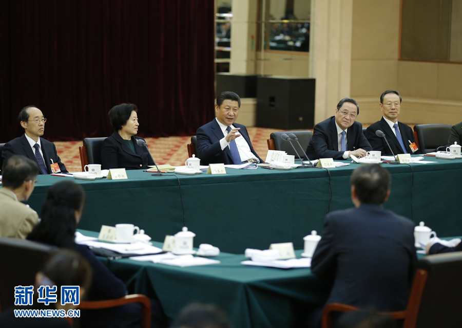 3月4日,中共中央总书记、国家主席、中央军委主席习近平看望出席全国政协十二届三次会议的民革、台盟、台联委员,听取委员们的意见和建议,并发表重要讲话。中共中央政治局常委、全国政协主席俞正声参加了看望和讨论。 新华社记者 鞠鹏 摄