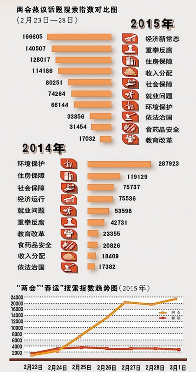 大数据看热点:两会热议话题搜索指数对比