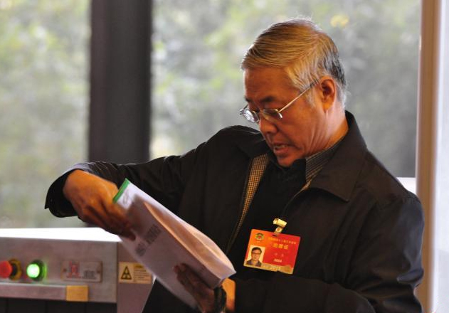 2015年3月1日,全国政协委员巩汉林到驻地报到。在接受媒体采访时他讲到今年的提案是关于"三公"经费全面公开。(孙佳涵摄/光明图片)