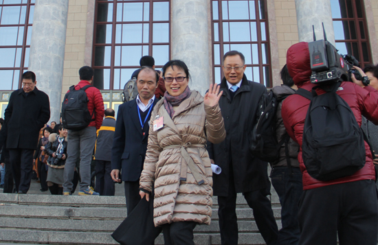 全国政协委员、中国曲协副主席盛小云走出会场