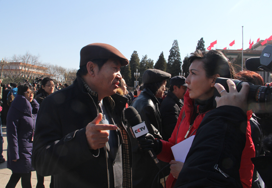 全国政协委员、著名编剧王兴东在步入会场时接受采访