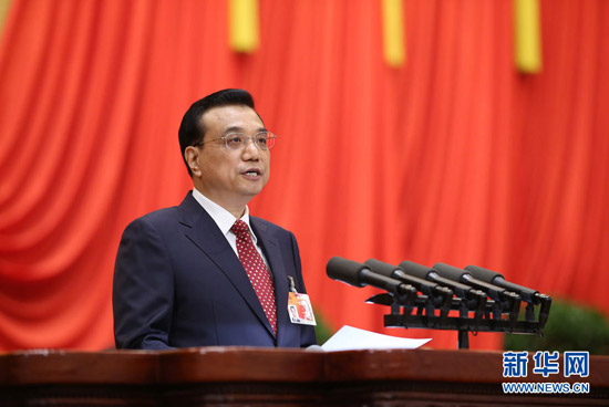 3月5日,第十二届全国人民代表大会第三次会议在北京人民大会堂开幕。国务院总理李克强作政府工作报告。 新华社记者 庞兴雷 摄
