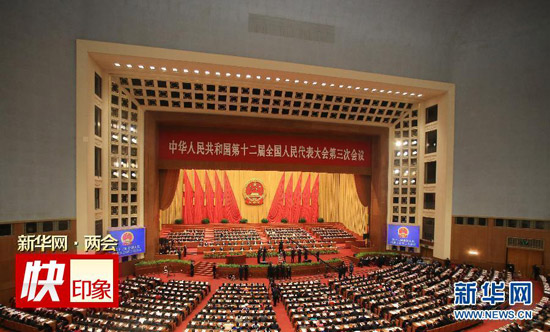 3月5日,第十二届全国人民代表大会第三次会议在北京人民大会堂开幕。 新华社记者杨宗友摄