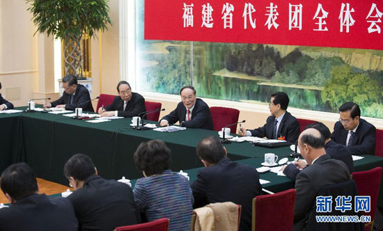 3月6日,中共中央政治局常委、中央纪委书记王岐山参加十二届全国人大三次会议福建代表团的审议。 新华社记者黄敬文摄