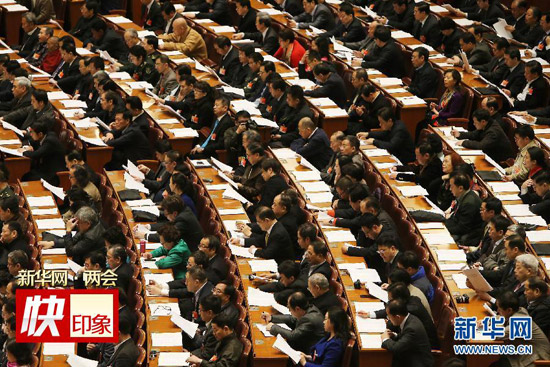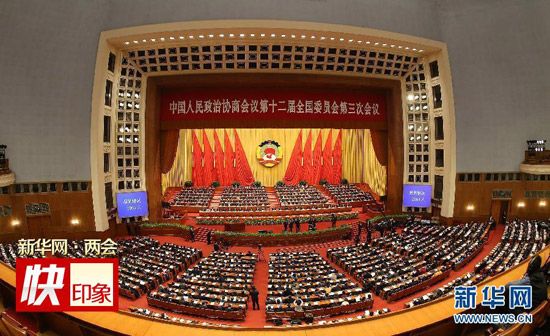 3月10日,全国政协十二届三次会议在北京人民大会堂举行第三次全体会议。新华社记者 吕迅 摄