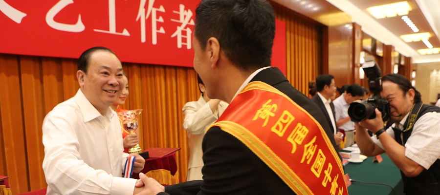 黄坤明为第四届全国中青年德艺双馨文艺工作者颁奖 孟祥宁 摄