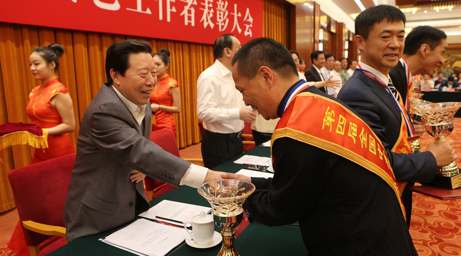 孙家正为第四届全国中青年德艺双馨文艺工作者颁奖 孟祥宁 摄
