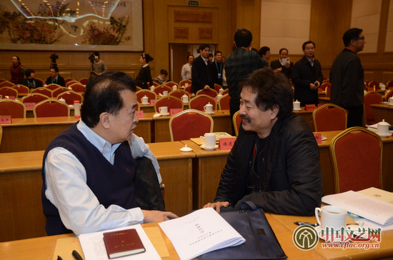 黄宏与濮存昕会后小叙。中国文艺网 单鸣 摄