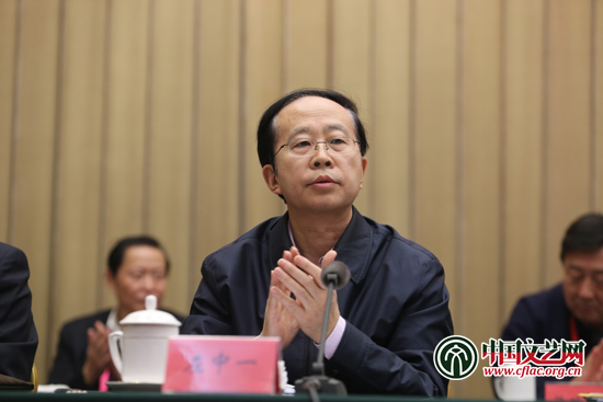 1月23日,中国文联九届七次全委会第一次全体会议在京召开。图为中国文联党组成员、副主席左中一通报了中国文联九届七次主席团会议通过的关于接纳中国文艺评论家协会为中国文联团体会员的决议。中国文艺网 孟祥宁 摄
