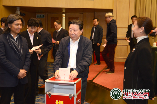 1月23日,中国文联九届七次全委会第一次全体会议在京召开。图为中国文联主席孙家正投票。中国文艺网 单鸣 摄