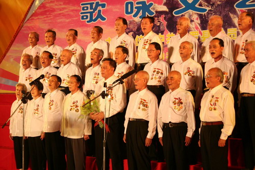 广东博罗县城文化广场今晚灯火辉煌,歌声嘹亮,一场大型歌咏文艺晚会正在这里举行,革命老区博罗县隆重纪念中国抗日战争胜利暨世界反法西斯战争胜利60周年。博罗县四套班子领导、东江纵队和粤赣湘边纵队老战士、党内外老同志代表、各行各业代表和数千名群众一起观看了演出。