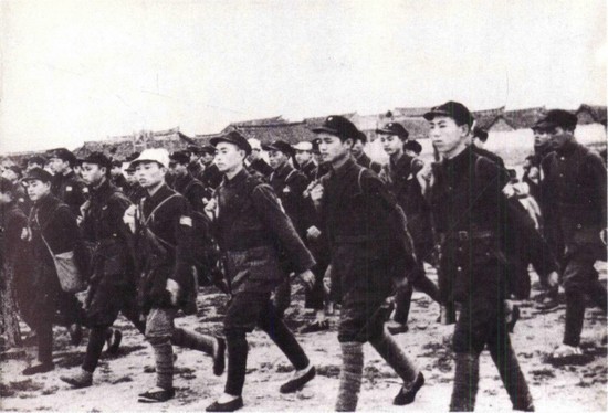新四军三师九旅部队开进练兵场 张爱萍摄