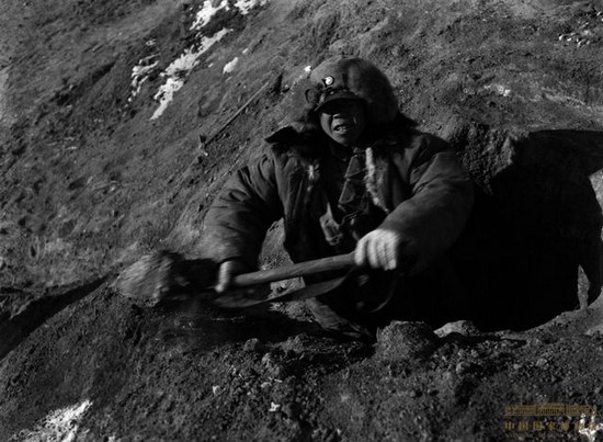 绥远前线挖战壕的少年士兵