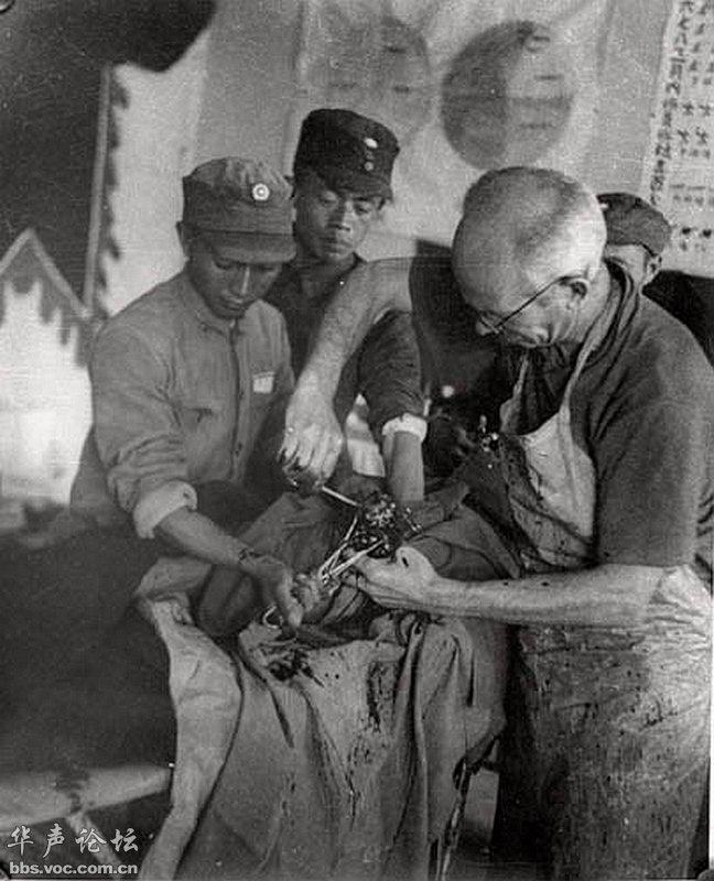 白求恩在模范病室为八路军伤员做手术。 (1938.9)沙飞/摄 (