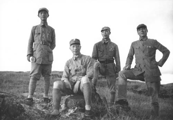 沙飞 百团大战前夕 左起:舒同、聂荣臻、杨成武、聂鹤亭 1940.8 河北平山吊儿